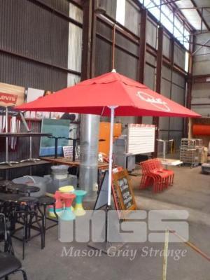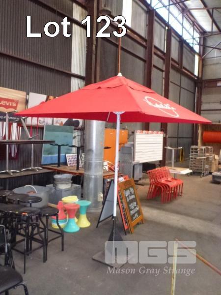 6 x CAFE UMBRELLAS, 200 x 200cm, "MEATBALL & CO", 5 x EXTENSION POLES ONLY & 2 x STANDS