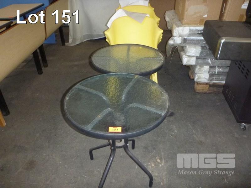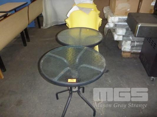 12 x OUTDOOR CAFE CHAIRS, YELLOW PVC & 2 x CIRCULAR GLASS TOP OUTDOOR TABLES