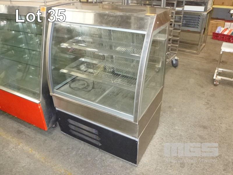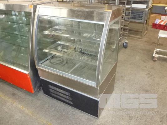 COSSIGA BOW GLASS CAKE DISPLAY 90cm, STAINLESS STEEL CASED SELF CONTAINED UNIT, 240V