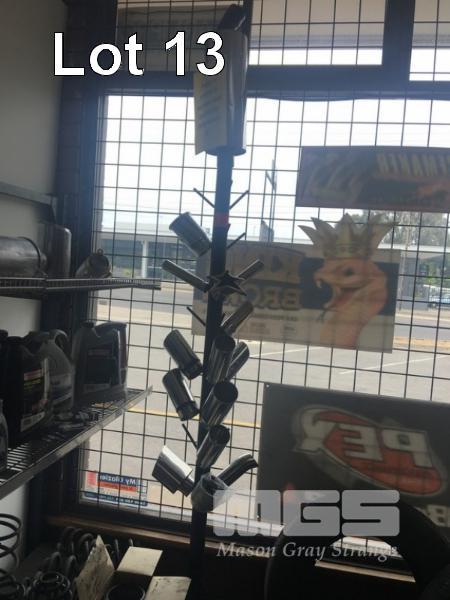 EXHAUST TIP STAND WITH ASSORTED CHROME TIPS