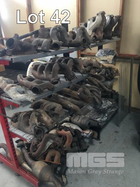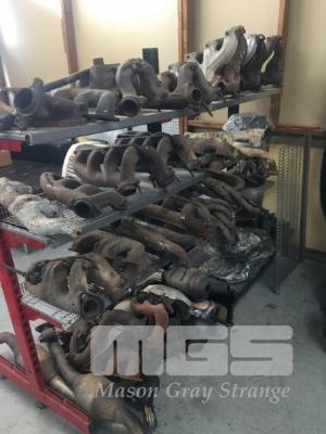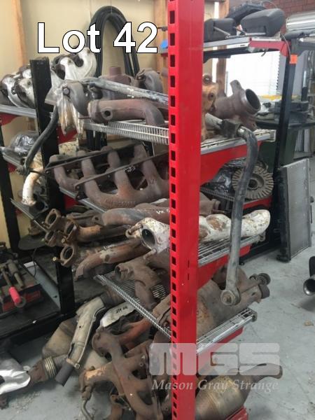 RACK & CONTENTS, LARGE QUANTITY ASSORTED EXHAUST MANIFOLDS & DISC BRAKES