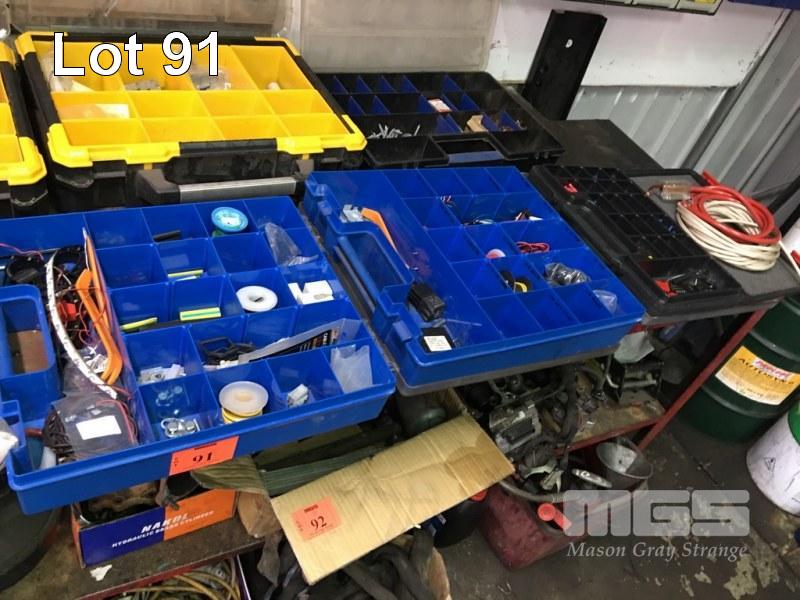 3 x ASSORTED GRAB CASES AND CONTENTS OF VARIOUS AUTO ELECTRICAL COMPONENTS, ETC.
