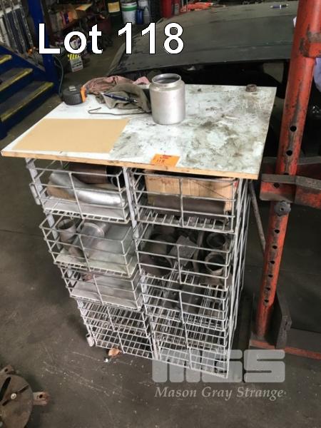 WORKSHOP PRESS, 20 TONNE, 45 x 80cm INTERNAL HEIGHT/WIDTH, HYDRAULIC HAND OPERATED, WITH WIRE BASKET RACK & ASSORTED TOOLING