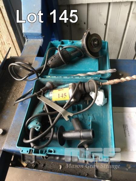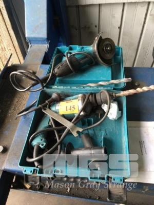 MAKITA HAMMER DRILL, HP1631 WITH ANGLE GRINDER, GA5030 240V