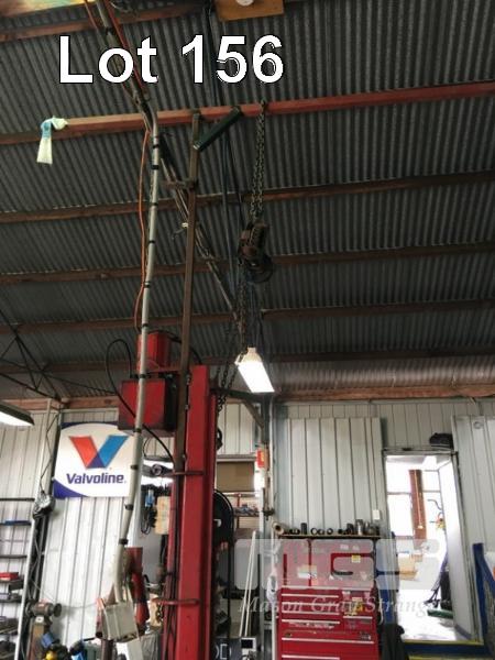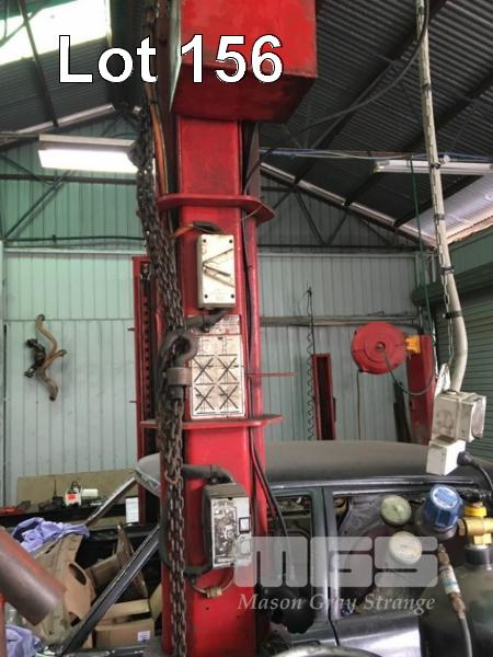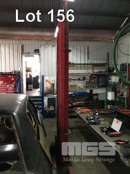 2 POST CAR HOIST, REPCO KONI TYPE: 3580 CAP: 2000kg 415V WITH WELDED OVERHEAD LIFTING FRAME & CHAIN HOIST (HARDWIRED, TO BE DISCONNECTED BY ELECTRICIAN)
