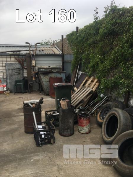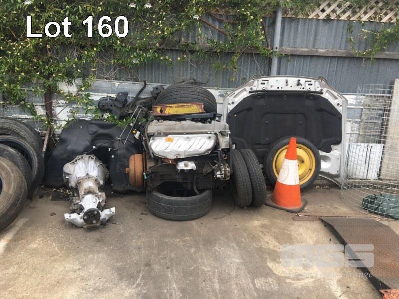 FORD ENGINE, 4 LITRE/6 CYLINDER (ALL FAULTS) AUTO TRANSMISSION, BTRA (ALL FAULTS) ASSORTED TAIL PIPES, EXHAUST SYSTEMS, STEEL SCRAP BIN ETC