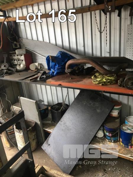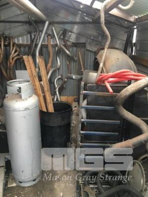 QUANTITY ASSORTED AUTOMOTIVE PARTS, EXHAUST PARTS, SUSPENSION COMPONENTS, MUFFLERS, TRANSMISSION, PAINTS ETC (NOT INCLUDING GAS BOTTLES)