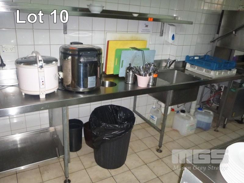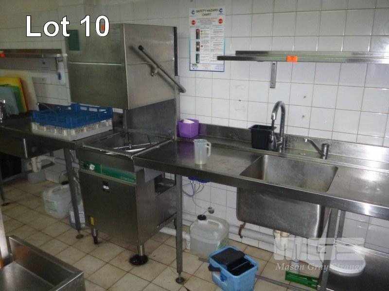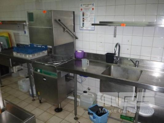 ESWOOD PASS THRU DISHWASHER MOD: ES-32U 415V WITH STAINLESS STEEL, 385cm INFEED/OUTFEED, 225cm BENCHING, SINKS TAPS & SPLASHBACKS (HARDWIRED & PLUMBED, LICENSED TRADESPERSON TO DISCONNECT)