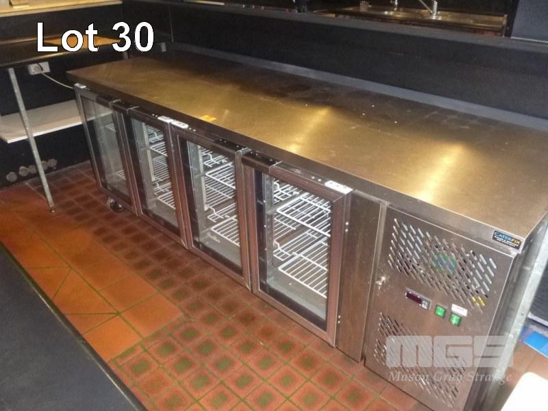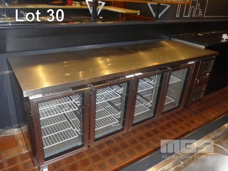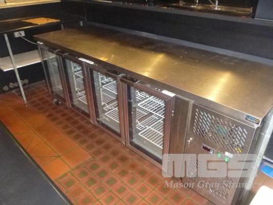 FED 4 DOOR COUNTER DISPLAY FRIDGE MOD: GN4100TNG 223cm, STAINLESS STEEL CASED SELF CONTAINED UNIT, 240V