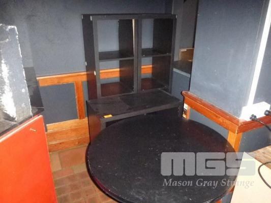 5 x ASSORTED CUBE SHELF UNITS, PEDESTAL BASED ROUND TABLE & VINYL DINING CHAIR