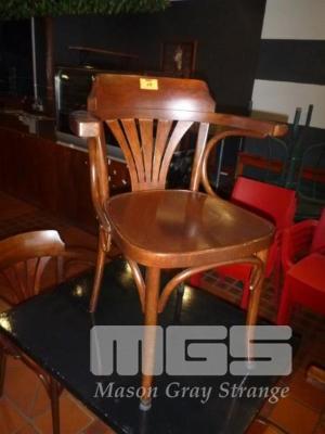 11 x BENTWOOD STYLE CAFE ARM CHAIRS (JAMES RICHARDSON) STAINED TIMBER