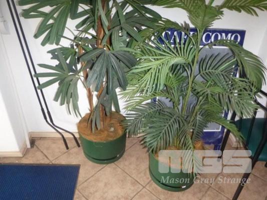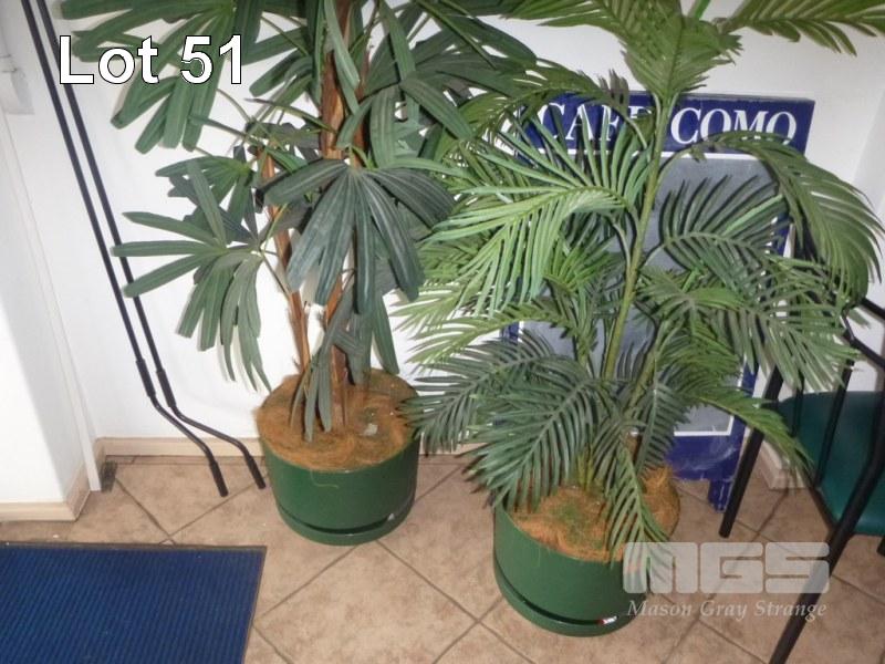 2 x ARTIFICIAL POT PLANTS & A-FRAME SIGNBOARD