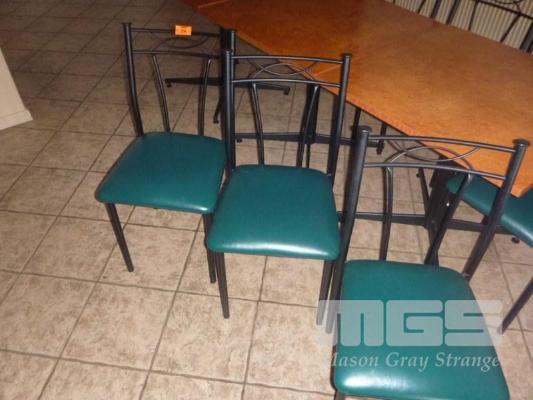 28 x CAFE CHAIRS, BLACK TUBULAR STEEL FRAME, GREEN VINYL