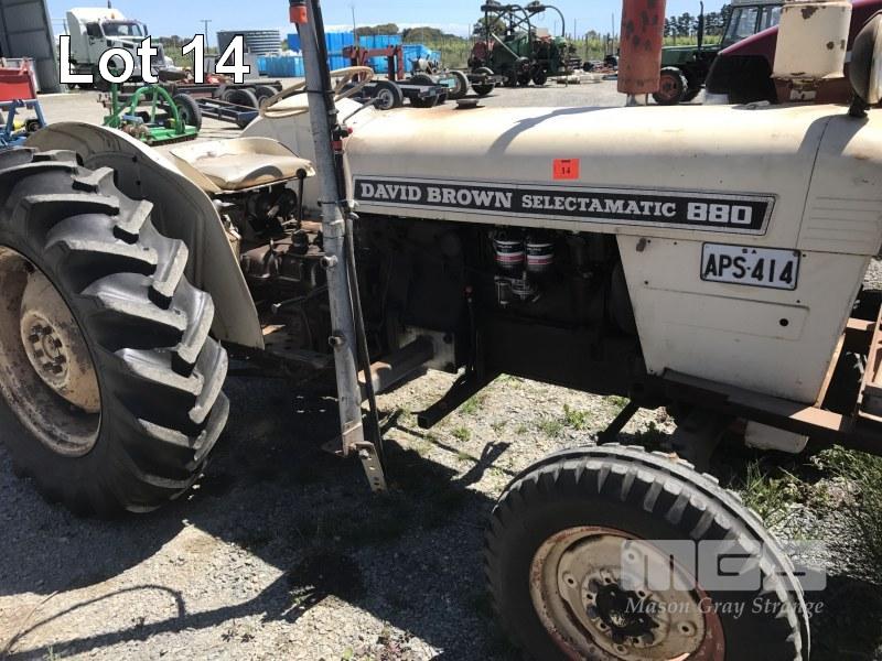 DAVID BROWN SELECTOMATIC 880 TRACTOR REG: APS 414 DIESEL, 3PL, PTO,HYDRAULICS WEIGHT BAR, HIGH/LOW SPEED 3 CYLINDER DIESEL (NO PAPERS, NO OWNER'S MANUAL, NO SERVICE BOOKS)
