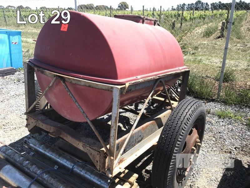 PADDOCK/TANK TRAILER, FIBREGLASS APPROX 1,000 LITRE WITH HARDIE TYPE 500/7 PUMP PIN HITCH SINGLE AXLE