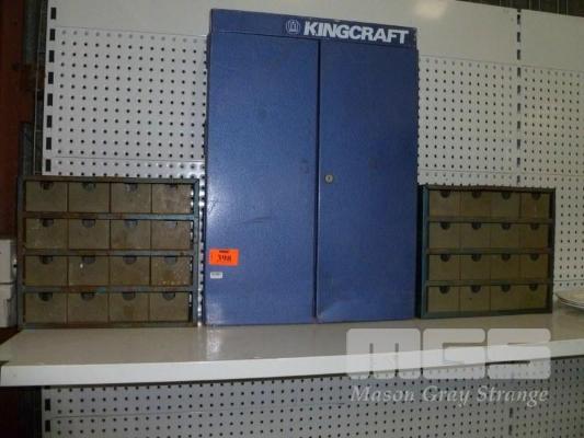 KINGCRAFT WALL MOUNT TOOL BOX & 2 x VINTAGE PARTS CABINETS