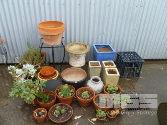 LARGE COLLECTION POTS & PLANTS, GLAZED TERRACOTTA & SUCCULENTS