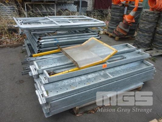 STEEL GALV SCAFFOLD SET:- 12 x THREAD SECTIONS 10 x UPRIGHT SECTIONS, EACH 1.8m (H) BRACES BARS & ADJUSTABLE FEED