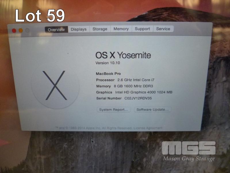 LAPTOP, APPLE MACBOOK PRO (A1286), CORE i7 3720QM (3RD GEN) @ 2.6GHz, 8GB DDR3 RAM, 750GB SATA HDD, DVD-RW, 15.4" WIDESCREEN (1440x900), INTEL HD VIDEO, Wi-Fi, MAC OS 10.10 INSTALLED & POWER SUPPLY S/N:C02JV12RDV35