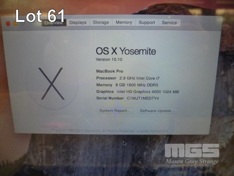 LAPTOP, APPLE MACBOOK PRO (A1278), CORE i7 3520M (3RD GEN) @ 2.9GHz, 8GB DDR3 RAM, 750GB SATA HDD, DVD-RW, 13.3" WIDESCREEN (1280x800), INTEL HD VIDEO, Wi-Fi, MAC OS 10.10 INSTALLED & POWER SUPPLY S/N:C1MJT1MEDTY4