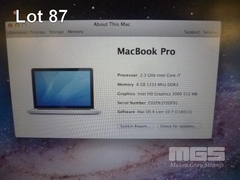 LAPTOP, APPLE MACBOOK (A1286), CORE i7 2820QM (2ND GEN) @ 2.3GHz, 8GB DDR3 RAM, 750GB SATA HDD, DVD-RW, 15" WIDESCREEN (1680x1050), INTEL VIDEO, Wi-Fi, MAC OS 10.7 INSTALLED & POWER SUPPLY S/N:C02FN1Y5DF91