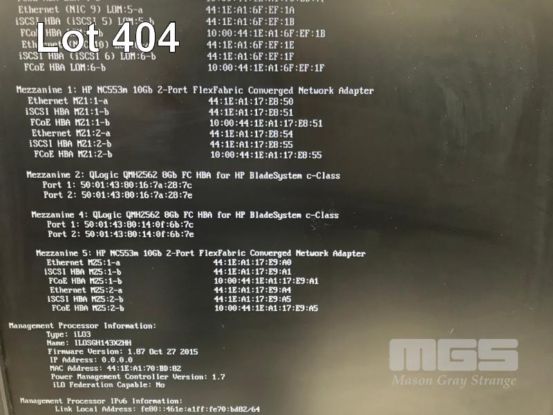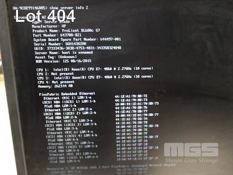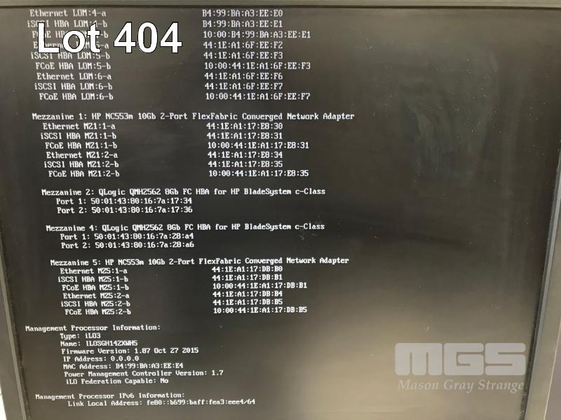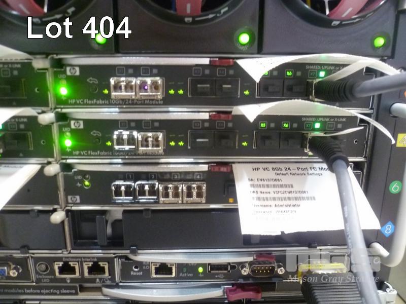 HP BLADESYSTEM c7000 ENCLOSURE G2 (507015-B21) WITH 3 x HP PROLIANT BLADE SERVERS 4 x HP VC FLEXFABRIC 10Gb/24-PORT MODULES 2 x HP VC 8Gb 24-PORT FC MODULES WITH RAILS & 15A EXTENSION CABLES #2 - HP PROLIANT BL680c G7, 2 x XEON E7-4860 @ 2.27GHz, 256GB RAM, 2 x 146GB HDD #4 - HP PROLIANT BL680c G7, 4 x XEON E7-4860 @ 2.27GHz, 256GB RAM, 2 x 146GB HDD #6 - HP PROLIANT BL680c G7, 4 x XEON E7-4860 @ 2.27GHz, 256GB RAM, 2 x 146GB HDD EACH WITH 2 x HP NC553m 10Gb 2-PORT FLEXFABRIC CONVERGED NETWORK ADAPTERS & 2 x QLOGIC QMH2562 8Gb FC HBA S/N:SGH140XMK6