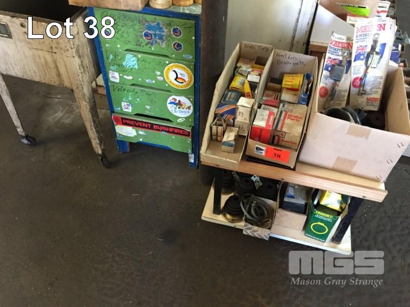 QUANTITY ASSORTED BRAKE & SUSPENSION PARTS, SUIT VINTAGE HOLDEN CONTENTS OF SMALL TROLLEY