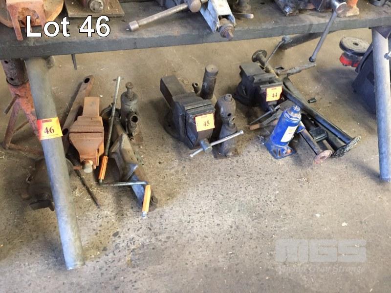 100mm VICE & 2 x ASSORTED JACKS, STAND & WORKSHOP HORSE STAND, 140 x 30cm