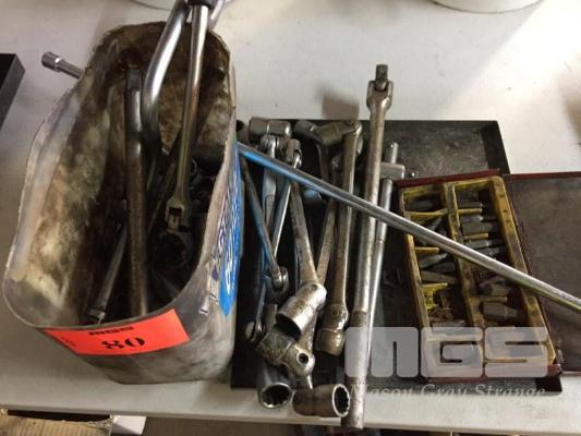 ASSORTED HAND TOOLS, SOCKET SET, SOCKET SPANNERS, DRIVER BITS, 75cm EXTENSION BAR