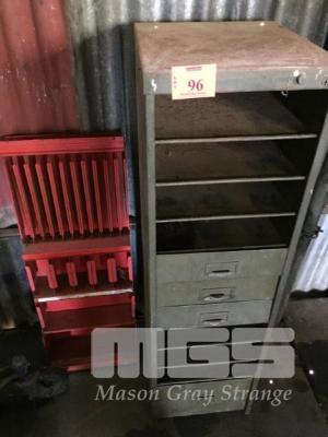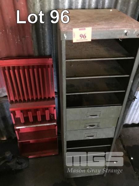 STEEL STORAGE UNIT, 4 DRAWER, 7 x PIGEON HOLES, 115 x 33cm WITH SPARK PLUG STORAGE UNIT, STEEL, 90 x 33cm
