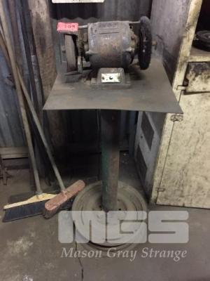 PEDESTAL GRINDER, HANDI TOOL, TWIN WHEEL ON FABRICATED STAND, 240V