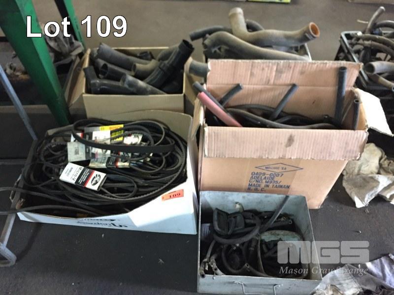 5 x BOXES ASSORTED FAN & DRIVE BELTS, AIR & FUEL HOSES