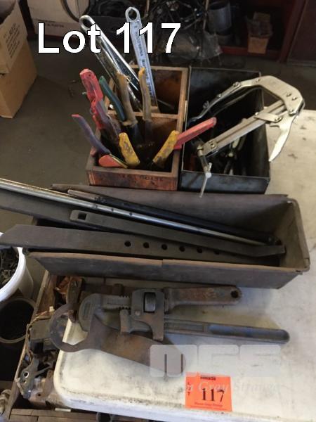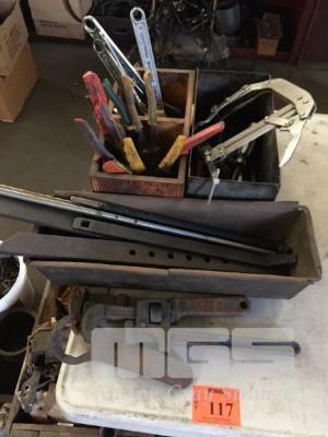 ASSORTED HAND TOOLS, MONKEY WRENCH, TYRE LEVERS, TIN SNIPS, ALLEN KEY