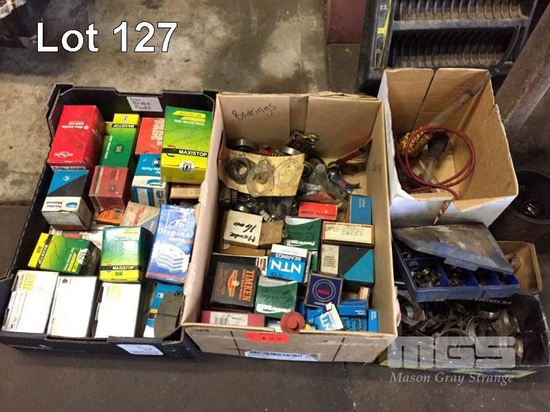 4 x BOXES ASSORTED AUTOMOTIVE BEARINGS, BRAKE DISC PADS, ETC, SUIT MERC, VOLVO, VW