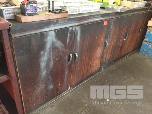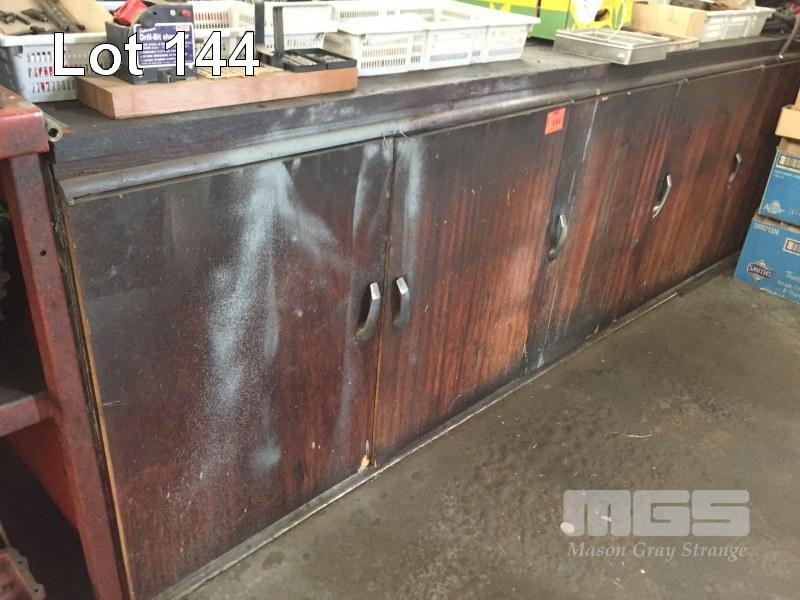 WORKSHOP BENCH UNIT, 5 DOOR, SOLID TIMBER TOP, TIMER FRAME, 305 x 78cm