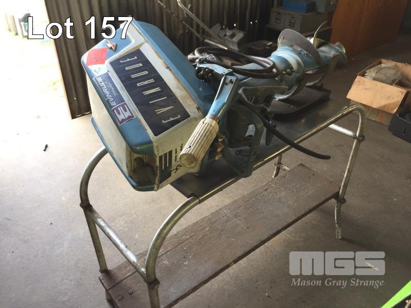 OUTBOARD ENGINE, EVINRUDE 5HP FISHERMAN PULL START, WITH STAINLESS STEEL WORKSHOP STAND
