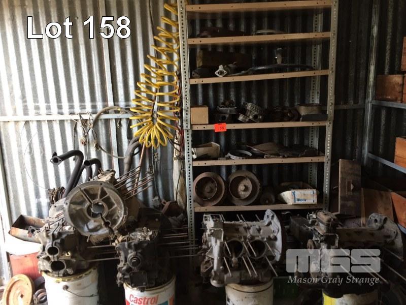 5 x VW BEETLE/KOMBI VAN 4 CYLINDER ENGINE BLOCKS & CONTENTS STEEL SHELF UNIT, 12 x CYLINDER HEADS, SUIT VW
