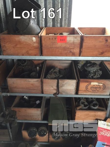10 x BOXES ASSORTED AUTOMOTIVE, CARBURETORS, PISTONS, CON RODS, CAM SHAFT, ETC, SUIT VW, 1 x BAY