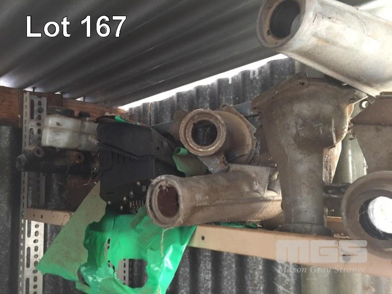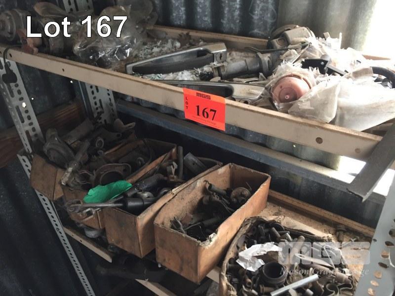 4 x SHELVES, SUSPENSION COMPONENTS, BRAKE BOOSTERS, DASH CLUSTER, ETC, SUIT VW & MERCEDES, 1 x BAY