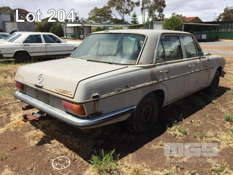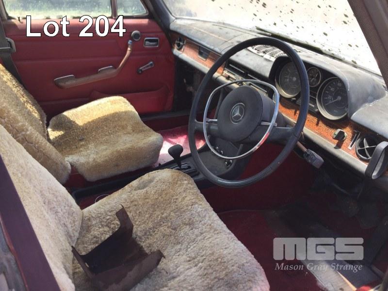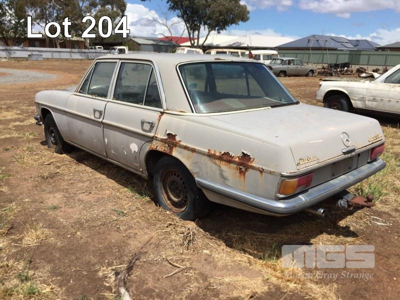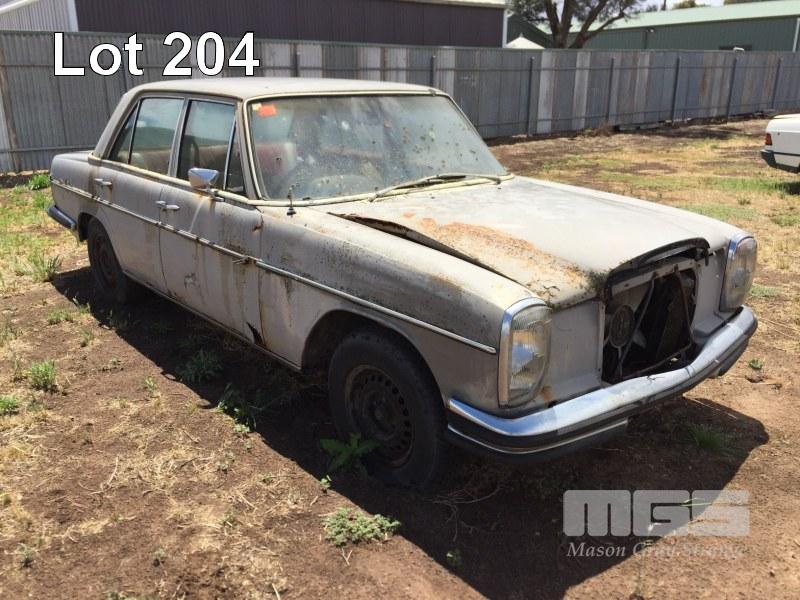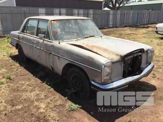 1970'S MERCEDES BENZ 280E SALOON, WITH MOTOR & RUNNING GEAR, WRECKING ONLY, NO REG PLATES