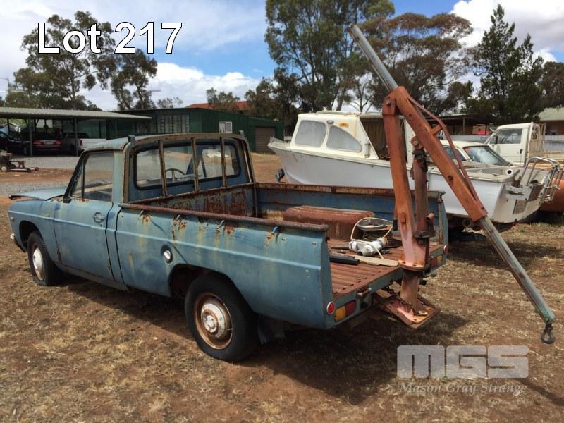 1976 MAZDA B1600 UTILITY REG: NO PLATES 4 CYLINDER, MANUAL TRANSMISSIOMN, PETROL, REAR MOUNT HYDRAULIC CRANE WITH MOTOR & RUNNING GEAR WRECKING ONLY (NO PAPERS, NO OWNER'S MANUAL, NO SERVICE BOOKS) CONDITION: - MAJOR RUST
