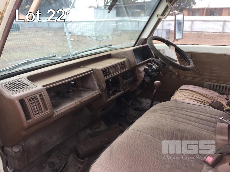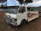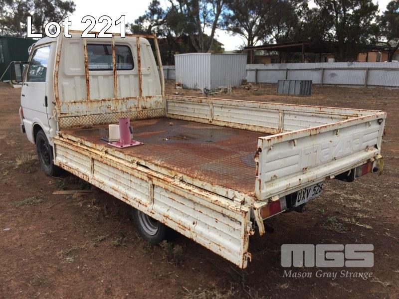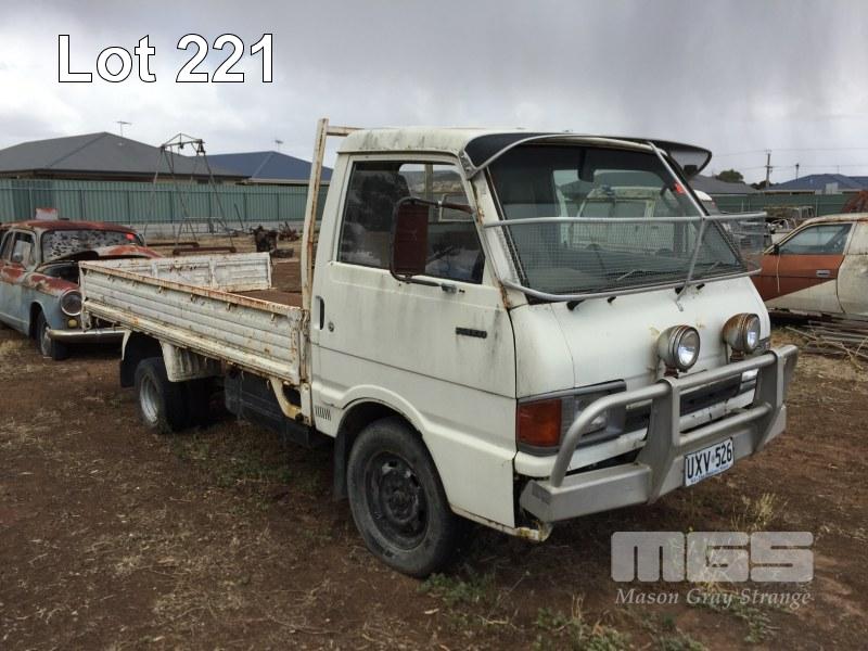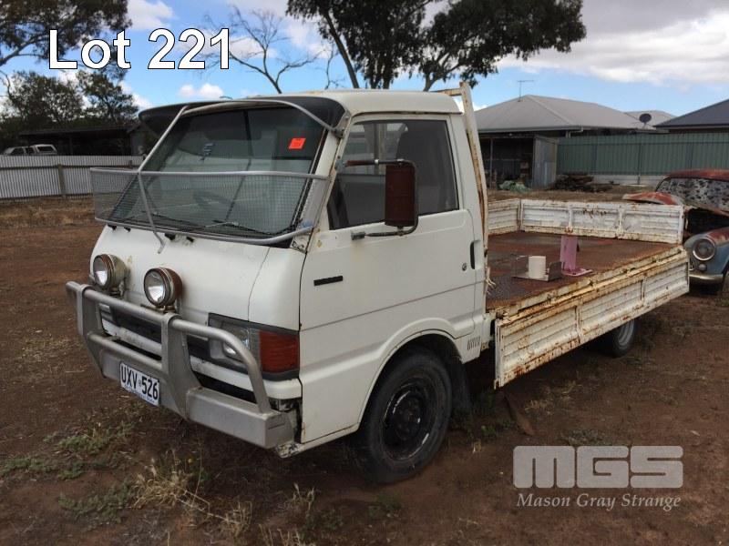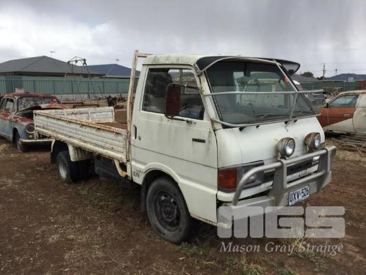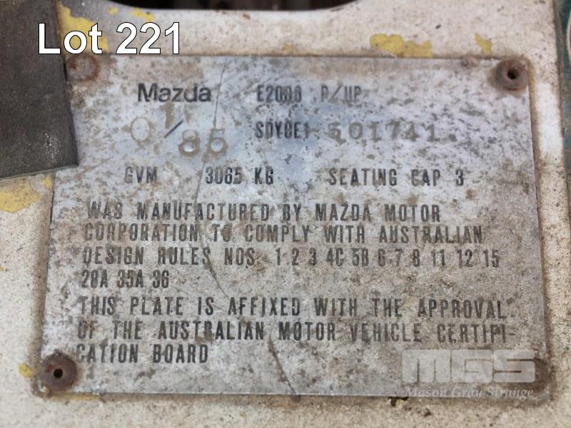 1985 MAZDA E200 SINGLE CAB TRAYTOP TRUCK REG: UXV 526 VIN: SDYUE1501741 ENG: 4D31374701 ODO: 355,948kms SHOWING GVM: 6,000kg GCM: 6,000kg 4 CYLINDER, MANUAL TRANSMISSION, PETROL, 3.15m TRAY, CHECKER PLATE STEEL WITH FOLDING SIDES, ALL FAULTS (NO PAPERS, NO OWNER'S MANUAL, NO SERVICE BOOKS)