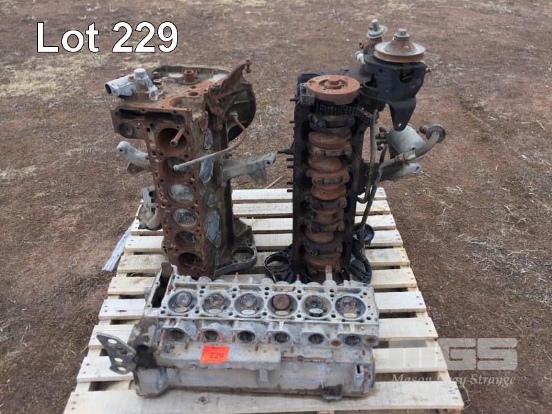 2 x ENGINE BLOCKS & ALLOY HEAD, 6 CYLINDER MERC, 1 x PALLET