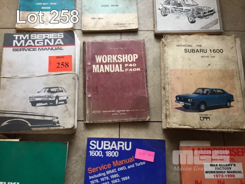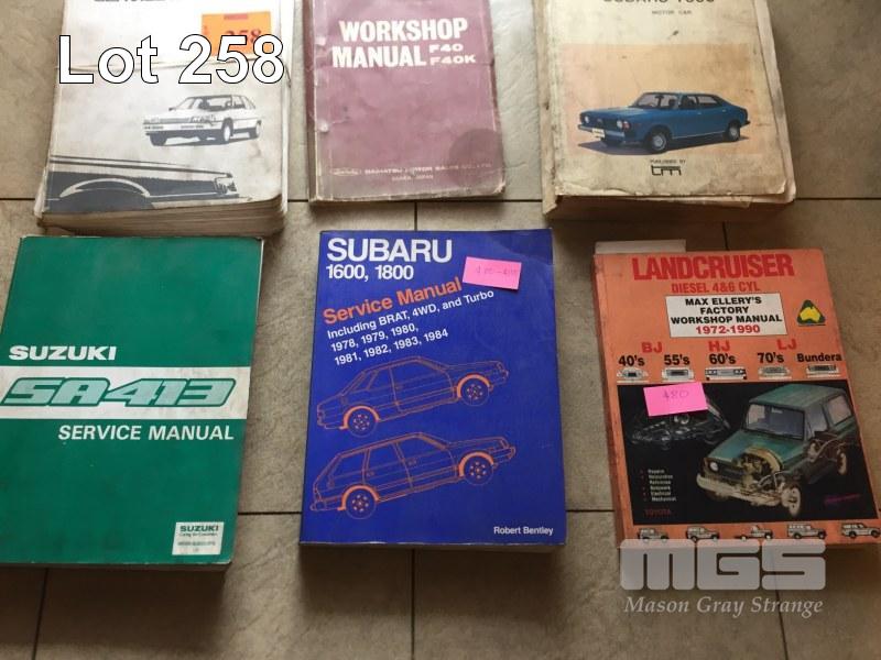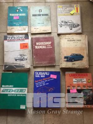 9 x WORKSHOP MANUALS INCLUDING SUZUKI, SUBARU 1600-1800, LANDCRUISER, ISUZU, DAIHATSU & MAGNA