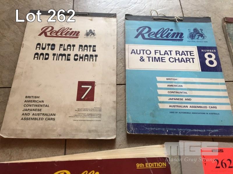 9 x RELLIM SPEC CHART MANUALS, WIRING FLAT RATE TIME CHARTS, ETC