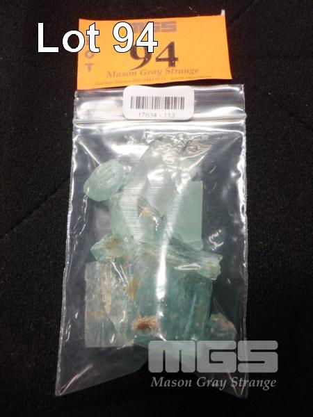 BAG OF UNCUT LIGHT BLUE GEMSTONES, TESTED AS AQUAMARINE, 44 GRAMS