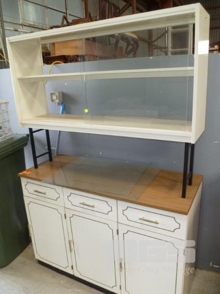 ROOM DIVIDER, LAMINATE, 3 DRAWER/DOOR. GLASS SLIDING DOORS