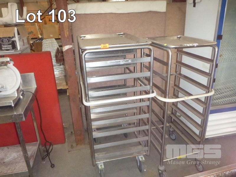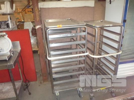 2 x STAINLESS STEEL TROLLEYS, 8 & 16 TIER