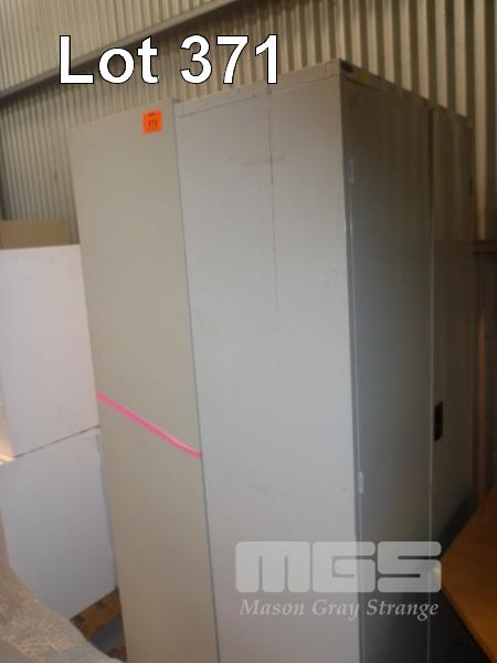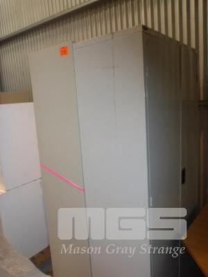 2 x STATIONERY CABINETS, 2 DOOR, GREY STEEL (1 x DAMAGED)