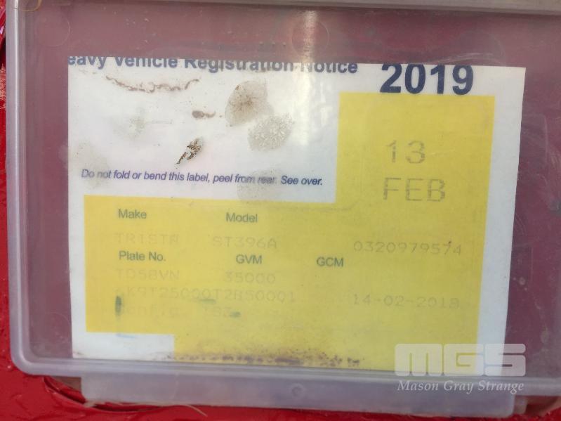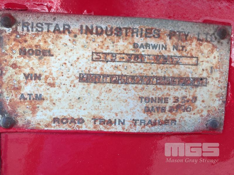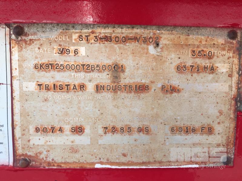 03 / 1996 TRISTAR IND ST3-300-V302 TRIAXLE SIDE TIPPER SEMI TRAILER REG: TD 58 VN (NSW) VIN / CHASSIS: 6K9T25000T2B50001 ATM: 35T SPRING SUSPENSION, SPIDER RIMS, 11R22.5, ROAD TRAIN RATED, 8.6m STEEL BODY, WITH ROLL OVER TARP REAR RING FEEDER HITCH